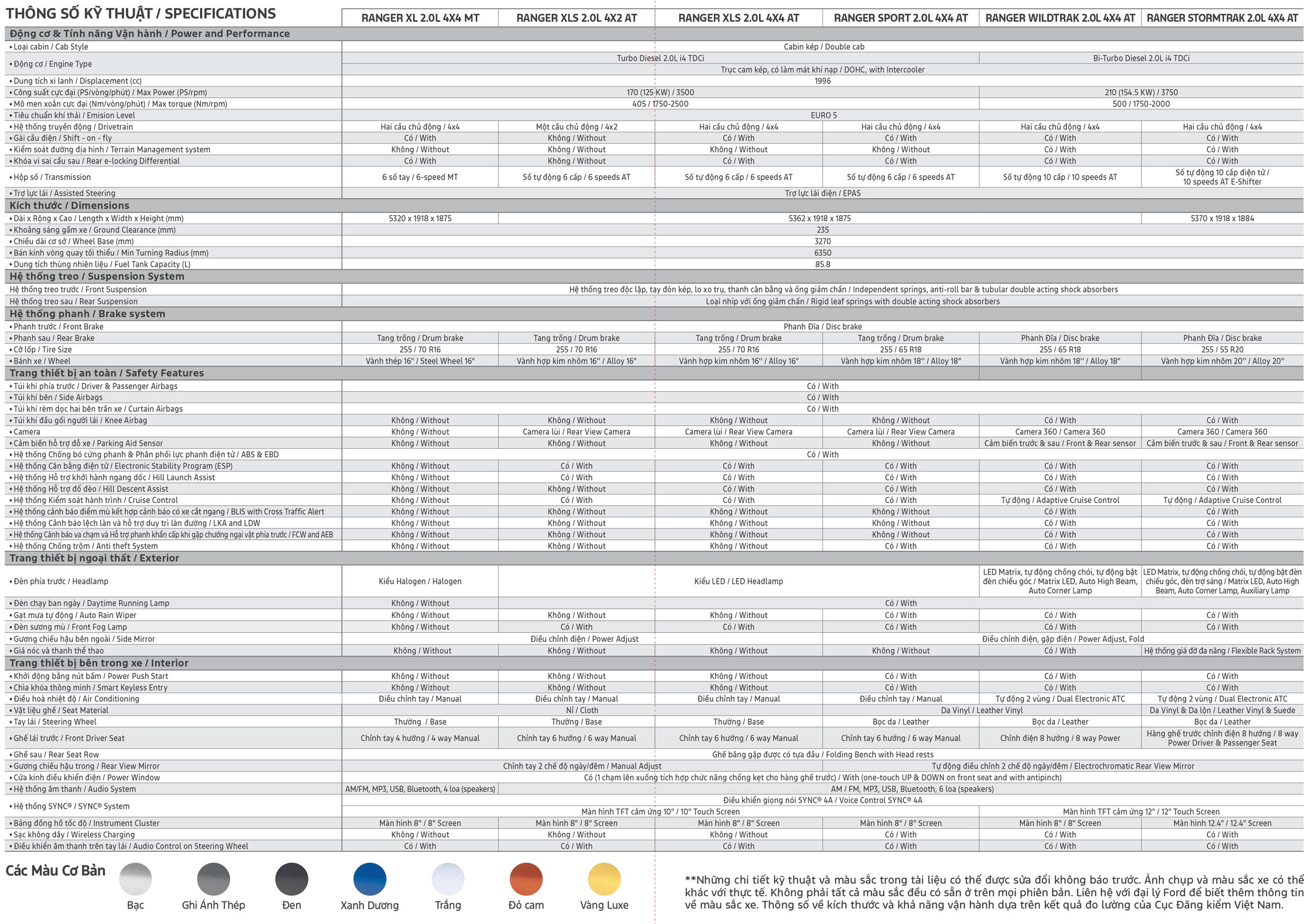 • Ranger XLS 2.0L 4×4 AT: 776.000.000VNĐ